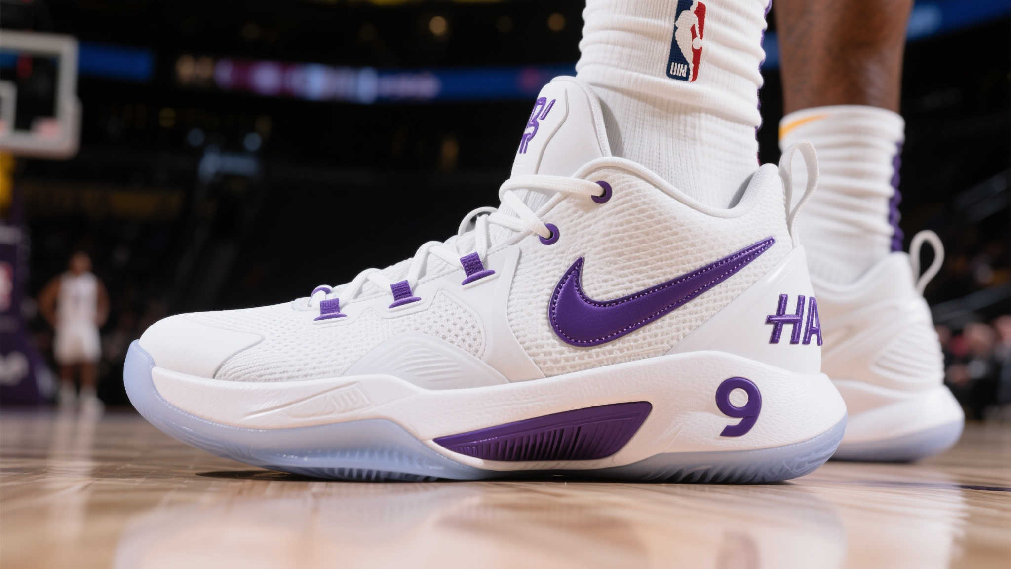 威廉姆斯脚踏白紫配色哈登9,斩获20分闪耀全场